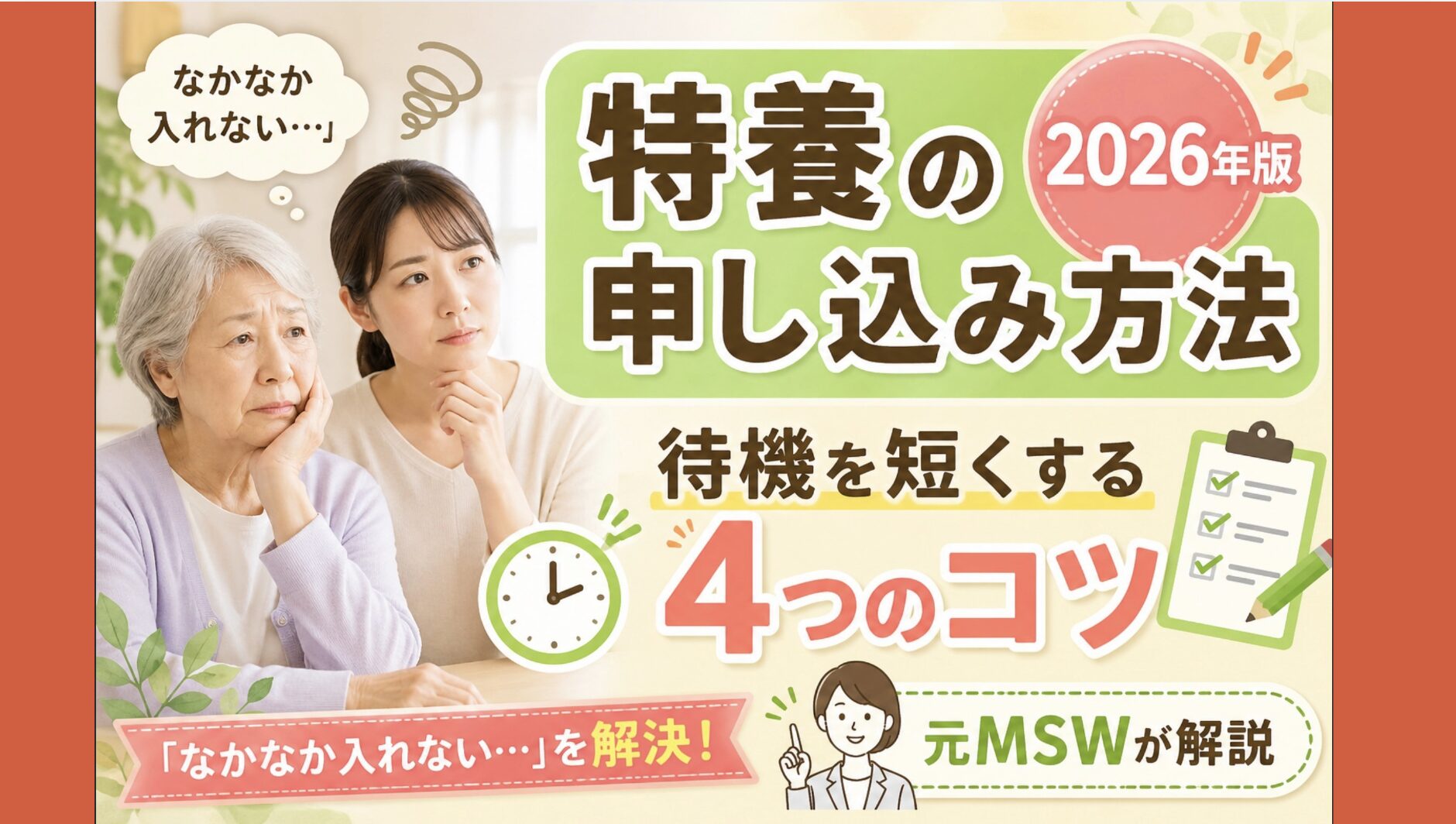老人ホーム選びは、一生に一度か二度の重大な決断です。私は医療ソーシャルワーカー(MSW)として、多くのご家族の施設選びに関わってきました。その経験から言えるのは、「知識があるだけで、選択肢と後悔の数が大きく変わる」ということです。